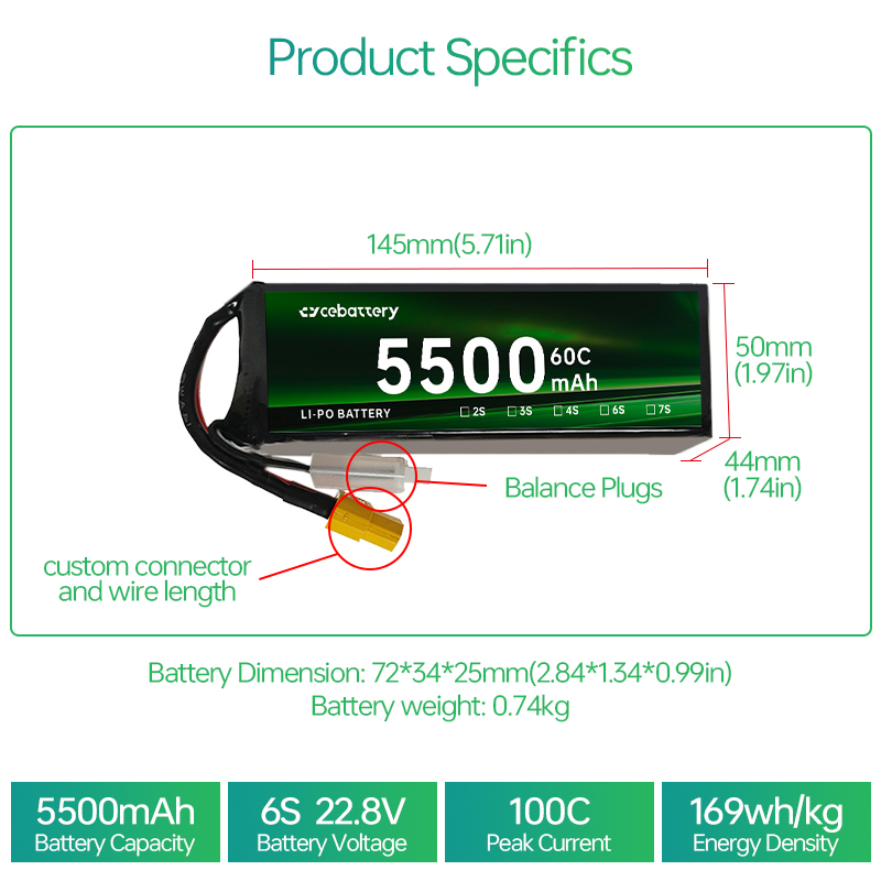 Light Weight High Performance 5500mAh 50C-100C High C-rating Lithium Ion Battery Pack for Drone/RC/UAV
